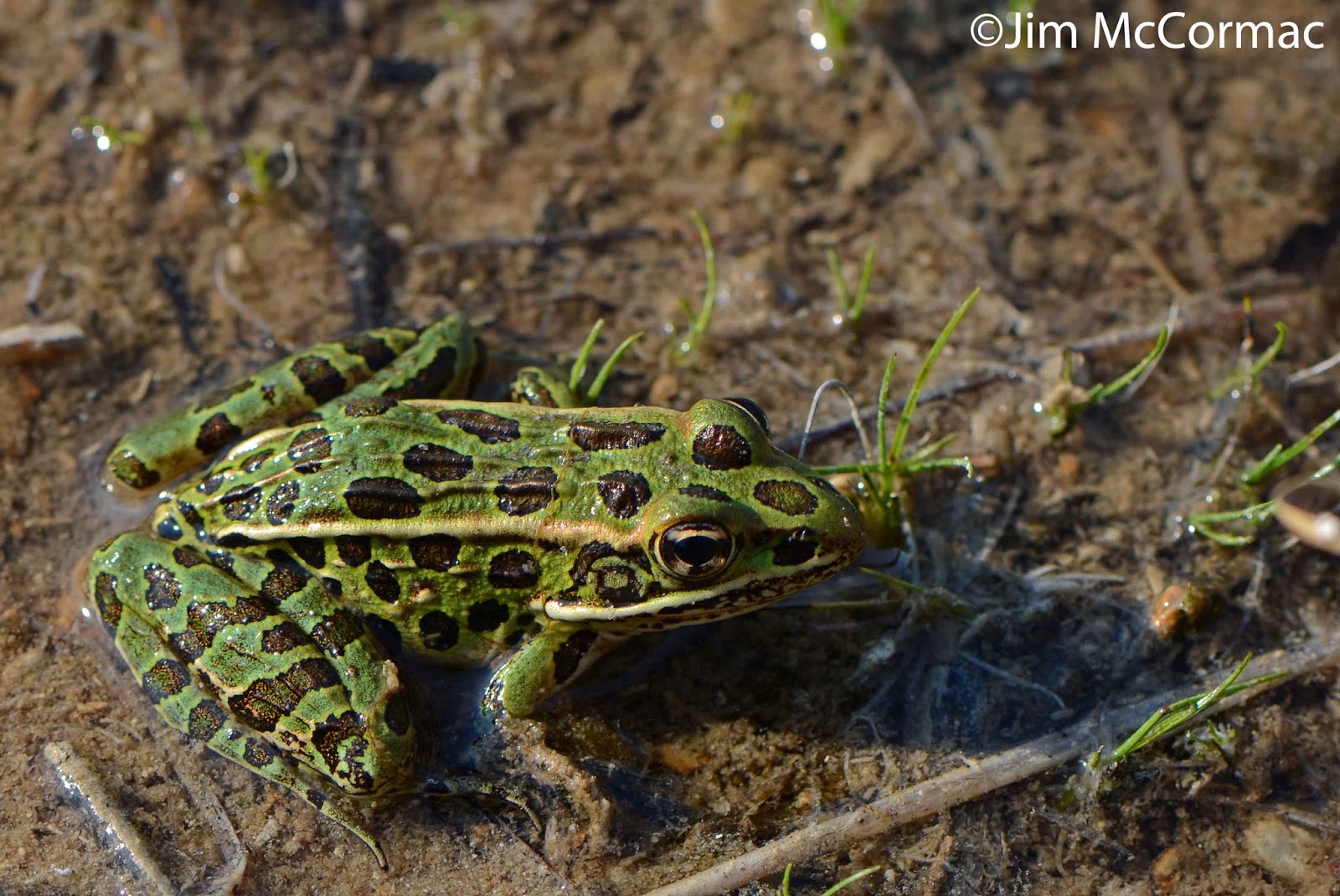 I do not believe any of our amphibians can hurdle along with the jumping ability of a northern leopard frog, Lithobates pipiens. One doesn't even need a good look at the animal - the spectacularly fast and lengthy jumps as the frog flees is all it takes to cinch the identification. Photographed on May 19, 2012 in northern Michigan's Presque Isle County.